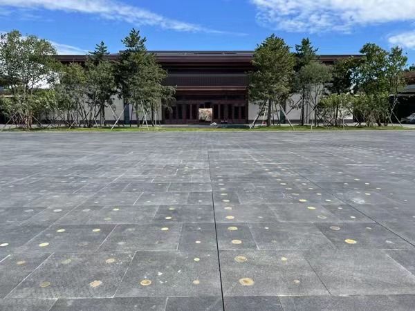 第二進(jìn)院落當(dāng)中,我們可以看到,在地上排布著大小不一的銅點(diǎn)。朱育帆說(shuō),這其實(shí)內(nèi)藏乾坤,顏色不同的圓點(diǎn),就呼應(yīng)著分色裝潢的四庫(kù)全書。“我們四庫(kù)全書里邊經(jīng)史子集,在色譜里邊有5個(gè)顏色,四庫(kù)全書是5種套封,所以就用5種顏色來(lái)映射這種樸素的行為。這個(gè)地方是整個(gè)場(chǎng)地里邊最大的一個(gè)硬質(zhì)廣場(chǎng)區(qū),以后也可以在這里舉辦活動(dòng),所以它就是一種文化的暗示?!敝煊硎??! ?/p>