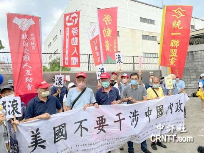 島內(nèi)統(tǒng)派團(tuán)體3日下午在景美人權(quán)園區(qū)抗議佩洛西竄臺(tái)(香港“中評(píng)社”鄭羿菲攝)