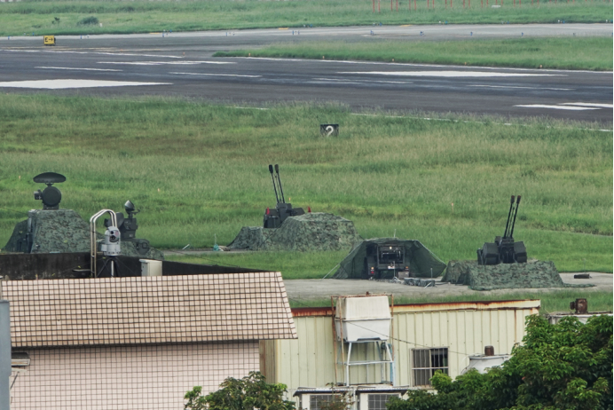 Pelosi)亞洲行趁機(jī)竄臺,解放軍在臺灣周邊將進(jìn)行繞臺軍演,臺灣空軍松山基地的35防空火炮拉開炮衣警戒。(圖片來源:臺灣“中時新聞網(wǎng)”)