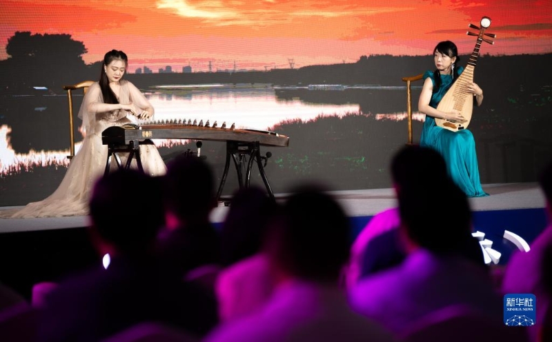 8月8日,演員在2022北京(國(guó)際)運(yùn)河文化節(jié)開(kāi)幕式表演琵琶古箏合奏《大運(yùn)之河》。