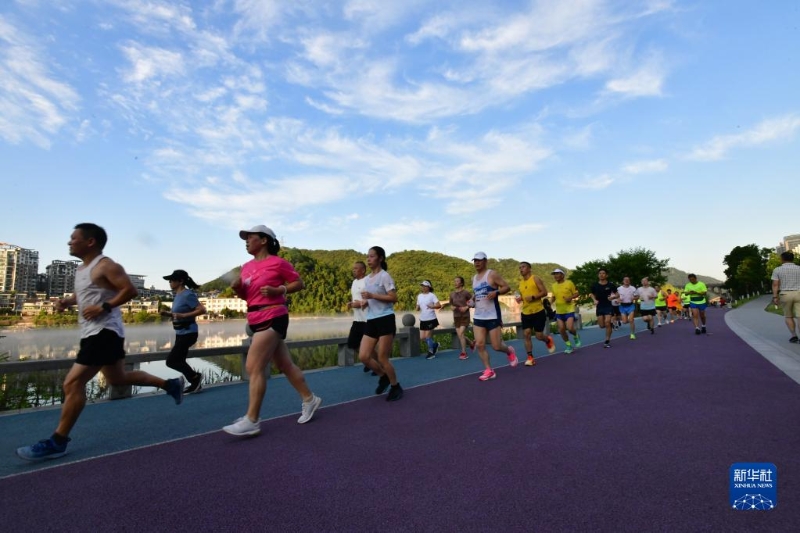 8月8日,健身愛(ài)好者在浙江省建德市新安江畔的新安綠道上跑步。