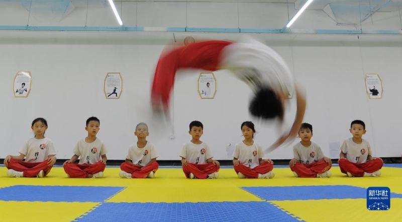 8月8日,小朋友在山東省滕州市一家武術(shù)培訓(xùn)機(jī)構(gòu)訓(xùn)練。