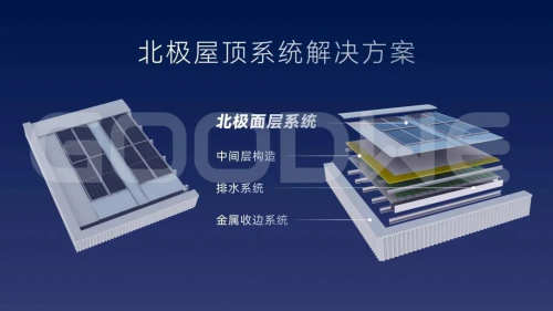 同時(shí),固德威也公布了“北極瓦”系列光電建材直接應(yīng)用于屋頂?shù)姆桨浮ㄟ^(guò)“北極瓦”獨(dú)有的集成導(dǎo)排水功能,結(jié)合屋面完整構(gòu)造與屋檐收邊構(gòu)造,打造建筑光伏一體化屋面系統(tǒng)。該系統(tǒng)同時(shí)展示了檢修運(yùn)維通道與自動(dòng)化清洗方案,將廣泛應(yīng)用于新建屋頂與改造屋頂。