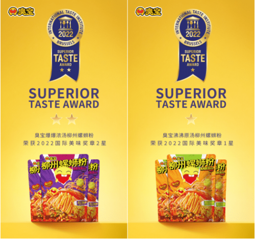 今年6月,由國際風味評鑒所(International Taste Institute)創(chuàng)辦的具有食品界“奧斯卡”之稱的國際美味獎章(Superior Taste Award)正式公布了2022年度全球食品及飲料評鑒結果,臭寶爆爆濃湯柳州螺螄粉斬獲美味獎2星獎章,臭寶沸沸原湯柳州螺螄粉斬獲美味獎1星獎章。據了解,臭寶品牌此次為首次參評,也成為了行業(yè)內首個獲得美味獎2星獎章的螺螄粉品牌,使得中國非遺美食螺螄粉在國際范圍再度獲得極高認可,進一步打開全球知名度。