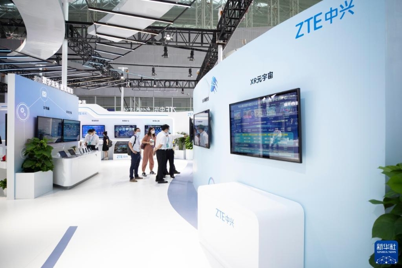 8月10日,中興通訊股份有限公司展區(qū)的工作人員在介紹產品。