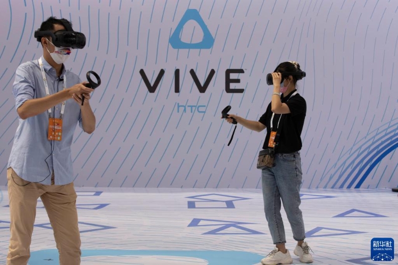 8月10日,人們在2022世界5G大會展廳里體驗5G網(wǎng)絡支持下的VR設備。