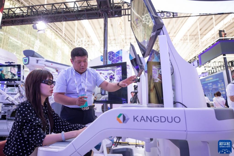 8月10日,在2022世界5G大會展廳里,參展商現(xiàn)場演示5G遠程手術機器人。