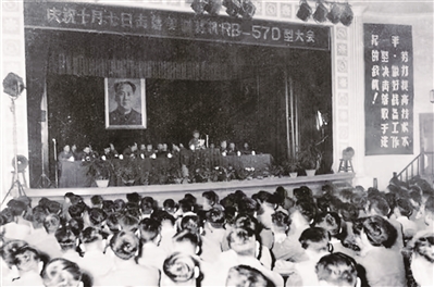 1959年10月14日,我空軍在北京通縣為地空導(dǎo)彈兵某營(yíng)擊落國(guó)民黨空軍一架RB-57D高空偵察機(jī)召開祝捷授獎(jiǎng)大會(huì)。