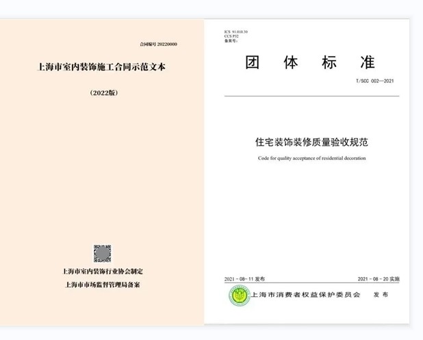 今年3.15,推出的2022《上海市室內(nèi)裝飾施工合同示范文本》,更是將團(tuán)標(biāo)正式貫標(biāo)!尚海整裝作為團(tuán)標(biāo)首批貫標(biāo)企業(yè),被中國(guó)建筑裝飾協(xié)會(huì)授予了《住宅裝飾裝修工程質(zhì)量驗(yàn)收標(biāo)準(zhǔn)和施工技術(shù)規(guī)程》標(biāo)準(zhǔn)實(shí)施單位殊榮。
