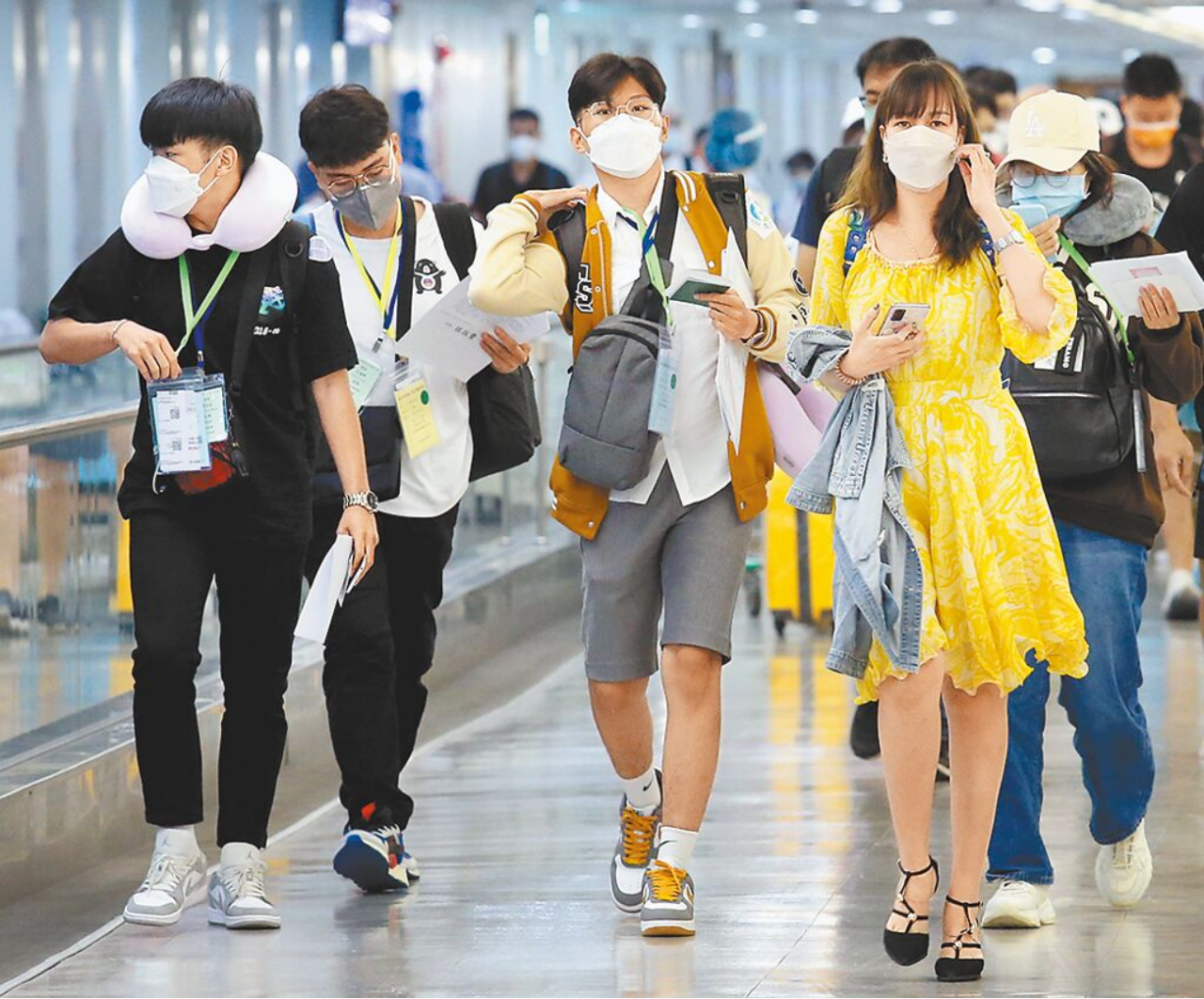 臺灣地區(qū)流行疫情指揮中心11日公布島內(nèi)新增22909例新冠肺炎確定病例,分別為22650例本地個案及259例境外輸入。圖為在桃園機場入境管制區(qū)內(nèi),剛下飛機的旅客準備通關(guān)入境。(范揚光攝) 圖片來源:臺灣“中時新聞網(wǎng)”