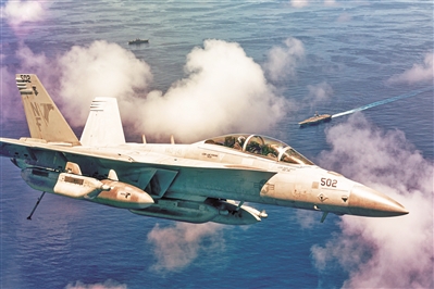 在力量運用上,美各軍種電磁戰(zhàn)力量常態(tài)與其他兵種混編使用。美空軍電磁干擾部隊、反輻射攻擊部隊和電子偵察情報部隊通常一體行動,承擔(dān)電磁戰(zhàn)“軟殺傷”任務(wù)的同時,用反輻射導(dǎo)彈對目標(biāo)進(jìn)行“硬殺傷”。美海軍各航母打擊大隊編入1支裝備6架EA-18G電子攻擊機(jī)的電子戰(zhàn)小隊。EA-18G電子攻擊機(jī)作戰(zhàn)半徑可達(dá)1750千米,能夠?qū)?zhàn)場電磁輻射源進(jìn)行探測定位,并壓制和干擾防空系統(tǒng)的運轉(zhuǎn)。該機(jī)主要配備“哈姆”高速反輻射導(dǎo)彈,可探測、追蹤對方雷達(dá)發(fā)射波,對防空系統(tǒng)實施摧毀。