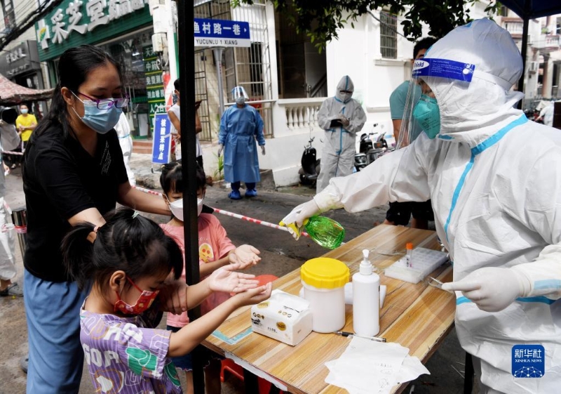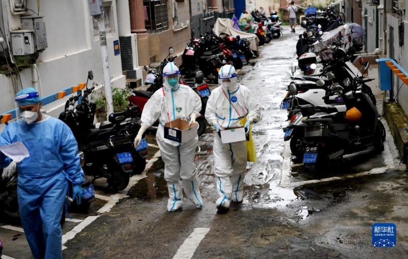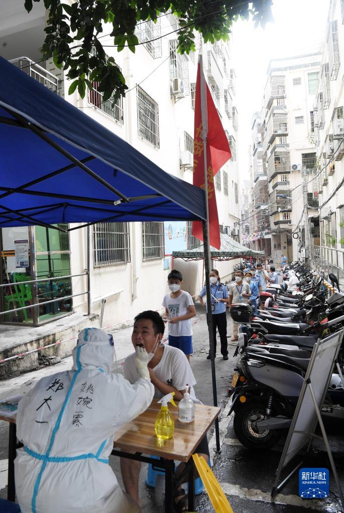 8月11日,在三亞市天涯區(qū)南邊海漁村,河南省援海南三亞醫(yī)療隊的醫(yī)護人員入戶為群眾做核酸檢測。