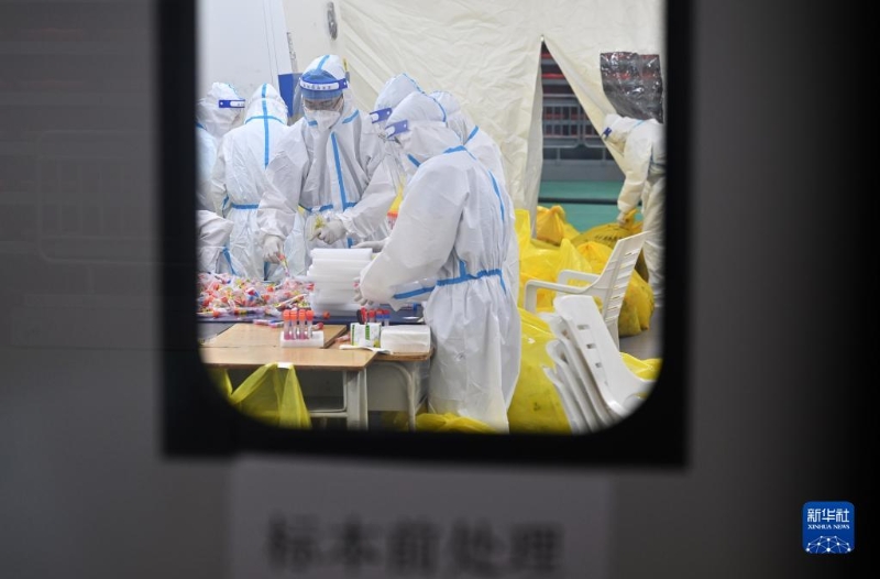 8月11日,廣東省援海南三亞核酸檢測隊的醫(yī)護人員在進行核酸檢測工作。