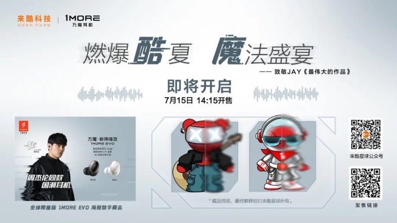 本次聯(lián)合發(fā)售萬魔新降噪豆 1MORE EVO及全球限量版1MOER EVO 海報數(shù)字藏品。