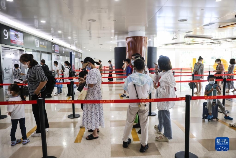8月14日,返程旅客在??诿捞m機(jī)場候機(jī)樓內(nèi)排隊(duì)準(zhǔn)備接受安檢。