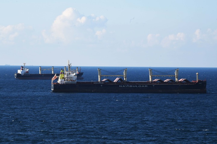 8月6日,從烏克蘭出發(fā)的第二批運(yùn)糧船抵達(dá)土耳其伊斯坦布爾的博斯普魯斯海峽黑海入??诟浇P氯A社記者沙達(dá)提攝