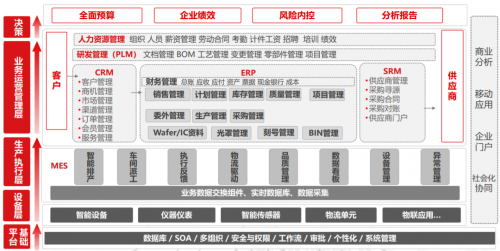 由于受到歐美對我國芯片的打壓,近年來國家層面開始重視芯片自主發(fā)展,國內的芯片設計企業(yè)得以迅猛發(fā)展。芯片設計行業(yè)以民營資本為主,其中不少還有外資背景。除少數(shù)頭部企業(yè),國內大多數(shù)芯片設計企業(yè)尚處于初創(chuàng)期或者成長期,初始信息化投入不高,一般會導入一些數(shù)字化基礎應用軟件如:財務軟件、庫存管理軟件和辦公自動化OA、 CRM,部分企業(yè)還會導入PLM設計管理軟件等,實現(xiàn)部門級應用。然而隨著一些企業(yè)的高速發(fā)展壯大,條塊分割的功能級應用系統(tǒng)已經(jīng)不能夠滿足此類企業(yè)的管理要求,迫切要求一體化、集成化應用數(shù)智管理平臺。