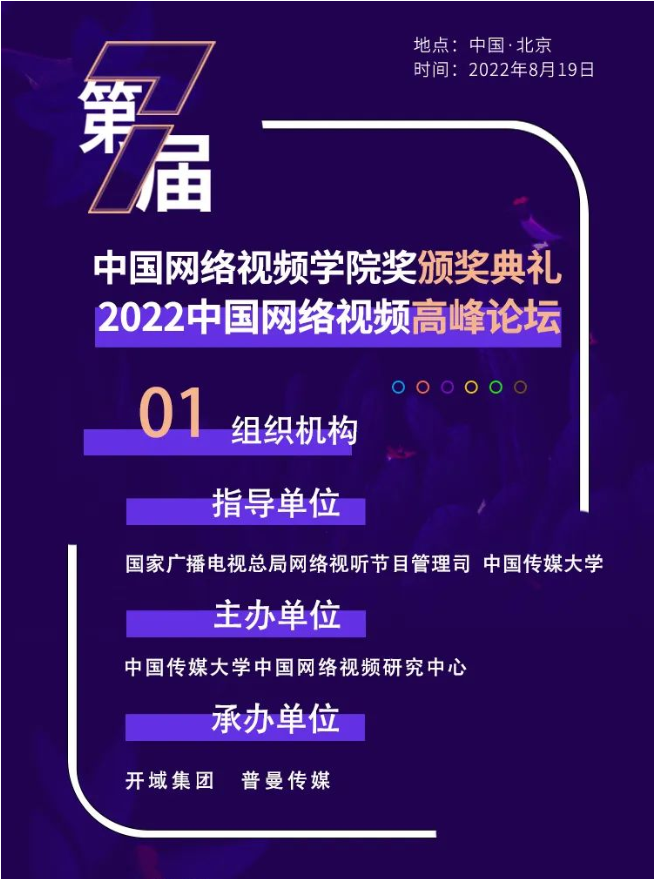 在網(wǎng)絡視聽行業(yè)重塑與升維的關鍵時期,由國家廣播電視總局網(wǎng)絡視聽節(jié)目管理司、中國傳媒大學指導,中國傳媒大學中國網(wǎng)絡視頻研究中心主辦,開域集團、普曼傳媒承辦的第七屆中國網(wǎng)絡視頻學院獎頒獎典禮將于8月19日啟幕,本次活動以“智能視聽@未來”為主題,旨在表彰新生力量、激勵行業(yè)創(chuàng)新、前瞻未來演進趨勢,聚焦智能時代下的網(wǎng)絡視聽價值引領。