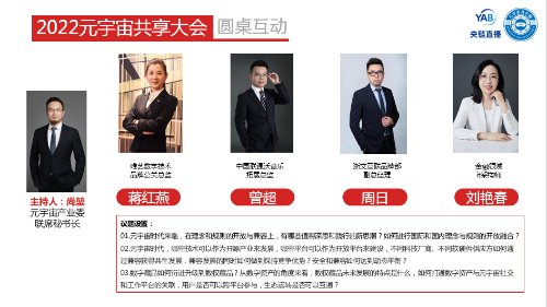 本次共享大會(huì)是繼2022年5月27日成功舉辦“探索與實(shí)驗(yàn)”2022元宇宙共識(shí)大會(huì)之后的又一行業(yè)盛事。由元宇宙產(chǎn)業(yè)委執(zhí)行秘書長武艷芳親自擔(dān)綱全程主持,并由元宇宙產(chǎn)業(yè)委創(chuàng)始發(fā)起人、秘書長,暢銷書《元宇宙》著者何超擔(dān)綱點(diǎn)評主持,做穿插補(bǔ)充,以此給在場參會(huì)嘉賓帶來一場兼具互動(dòng)性和趣味性,干貨滿滿的元宇宙行業(yè)盛會(huì)。