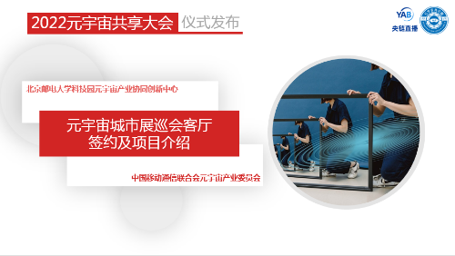 ——元宇宙產(chǎn)業(yè)委秘書長何超、元宇宙產(chǎn)業(yè)委副主任委員陳曉華啟動(dòng)元宇宙產(chǎn)業(yè)委與北郵科技園元宇宙協(xié)同創(chuàng)新中心簽約“元宇宙城市展巡會(huì)客廳”及項(xiàng)目介紹。