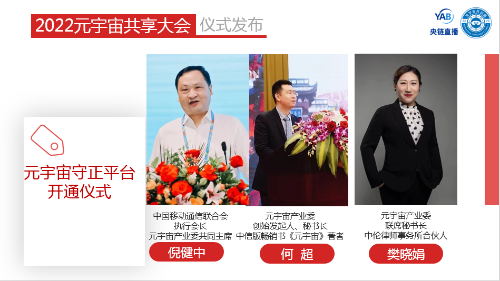 央鏈直播快訊:2022年8月16日,“開放與兼容”2022元宇宙共享大會(huì)暨《元宇宙十大技術(shù)》圖書首發(fā)儀式,及元宇宙產(chǎn)業(yè)委第一屆第二次全體委員大會(huì),在國管局·杏林山莊(北京)成功舉辦。