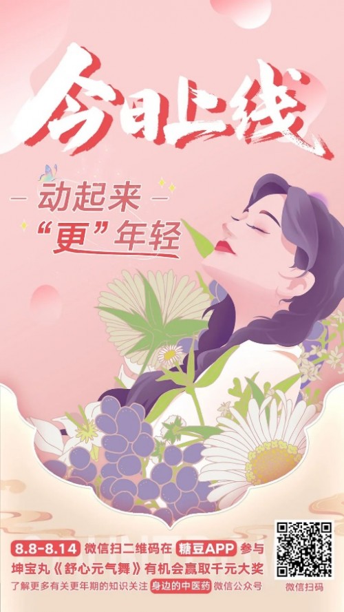 8月8日,“動(dòng)起來(lái)更年輕”挑戰(zhàn)賽正式在糖豆APP上線,活動(dòng)時(shí)間從8月8日10:00到8月15日10:00,以“要健康舞動(dòng),不要病痛”為口號(hào),邀請(qǐng)大家前往北京同仁堂坤寶丸無(wú)憂動(dòng)感學(xué)院,動(dòng)起來(lái)找回年輕態(tài)。