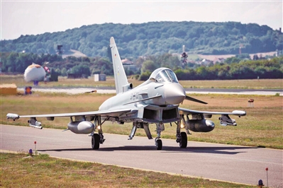 德國(guó)“臺(tái)風(fēng)”戰(zhàn)機(jī)準(zhǔn)備從諾伊堡空軍基地起飛。