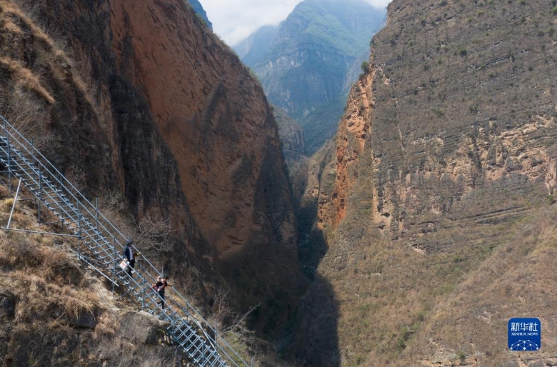2020年5月13日,四川省涼山彝族自治州昭覺(jué)縣支爾莫鄉(xiāng)“懸崖村”——阿土列爾村高山區(qū)的貧困戶(hù)沿著鋼梯下山,準(zhǔn)備搬進(jìn)昭覺(jué)縣城易地扶貧搬遷安置點(diǎn)的新家(無(wú)人機(jī)照片)。新華社記者 江宏景 攝