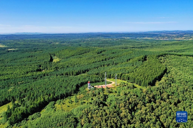這是2021年8月23日拍攝的河北塞罕壩機(jī)械林場(chǎng)內(nèi)的望海樓(無(wú)人機(jī)照片)。三代塞罕壩林場(chǎng)人50多年堅(jiān)持植樹(shù)造林,用汗水澆灌出綠波涌動(dòng)的百萬(wàn)畝人工林海。新華社記者 牟宇 攝