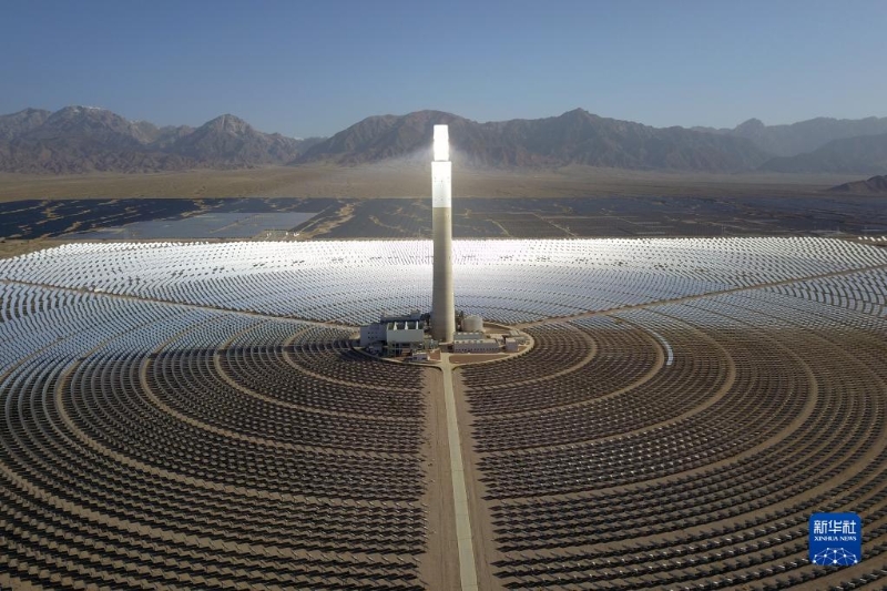 這是2022年6月8日在海西蒙古族藏族自治州德令哈市光伏(光熱)產(chǎn)業(yè)園拍攝的青海中控德令哈50兆瓦光熱電站(無(wú)人機(jī)照片)。新華社記者 范培珅 攝