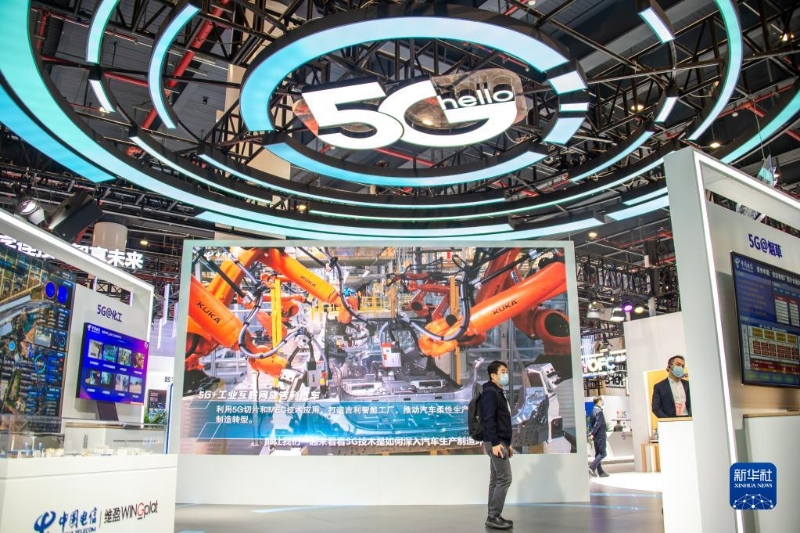 這是2021年11月20日在武漢中國(guó)光谷科技會(huì)展中心拍攝的“5G+工業(yè)互聯(lián)網(wǎng)成果展”現(xiàn)場(chǎng)。新華社記者 伍志尊 攝