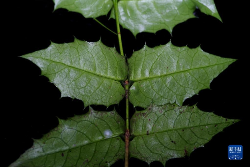 在野外拍攝的尖齒衛(wèi)矛的葉片(2021年8月10日攝)。新華社發(fā)(胡君 攝)