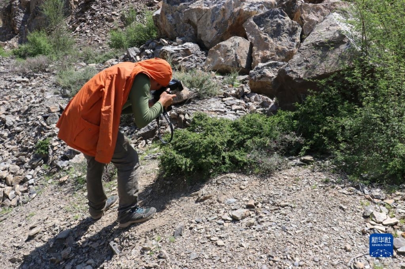 2021年,胡君在四川省得榮縣進(jìn)行野外考察(資料照片)。新華社發(fā)