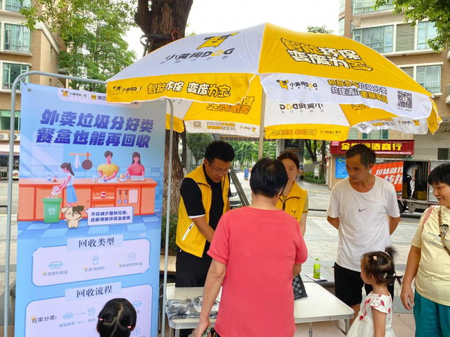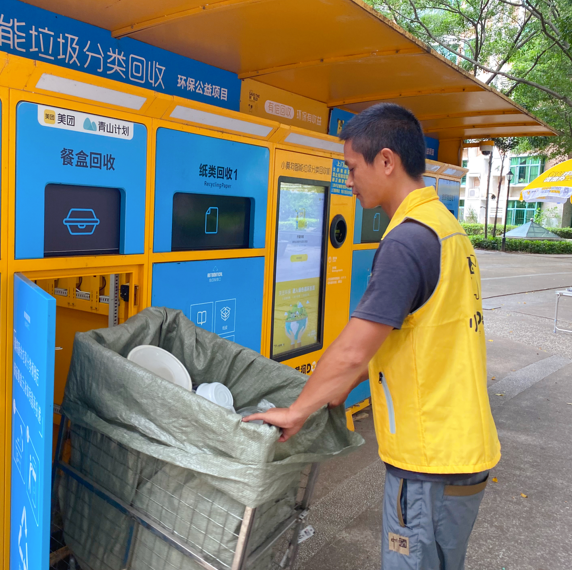 作為國內(nèi)首家全國性智慧環(huán)保綜合運(yùn)營服務(wù)商,小黃狗環(huán)??萍甲?017年成立以來,秉持著“天下無廢”的愿景,一直致力于推進(jìn)循環(huán)經(jīng)濟(jì)發(fā)展,促進(jìn)可回收物應(yīng)收盡收。為從源頭減少外賣餐盒的塑料污染,搭建塑料餐盒回收鏈條,推動(dòng)其回收及再生利用,2022年7月,小黃狗環(huán)??萍紨y手美團(tuán)青山計(jì)劃在東莞江南世家、金豐花園、江南第一城、江南雅筑、宏源花園5所小區(qū)開啟社區(qū)餐盒回收常態(tài)化試點(diǎn)項(xiàng)目。利用試點(diǎn)小區(qū)內(nèi)的7臺(tái)小黃狗智能回收機(jī)增設(shè)“餐盒”回收窗口,用于居民、保潔投放外賣餐盒、咖啡杯、奶茶杯等污染廢棄塑料,每日由小黃狗回收人員進(jìn)行清運(yùn)。此外,小黃狗環(huán)??萍歼€聯(lián)合小區(qū)保潔進(jìn)行餐盒統(tǒng)收,將居民錯(cuò)扔到其他垃圾的餐盒統(tǒng)一收集后,投遞至小黃狗餐盒回收窗口,促進(jìn)餐盒有序回收。