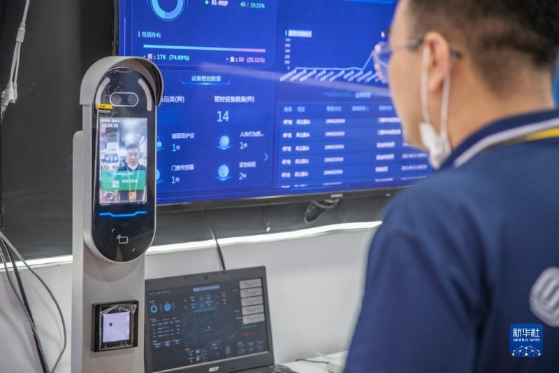 8月21日,工作人員在2022智博會上演示搭載有健康監(jiān)測功能的智慧門禁系統(tǒng)。新華社記者 黃偉 攝