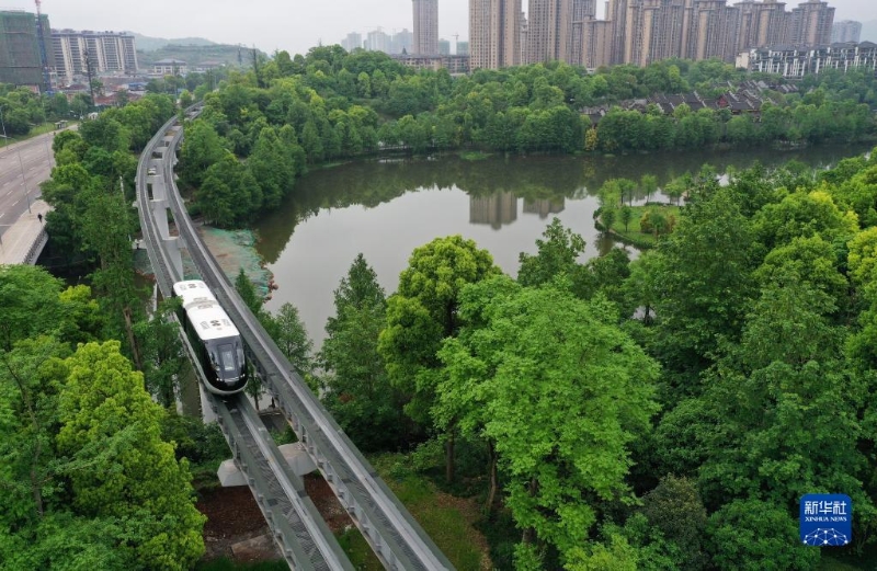 重慶首條自動駕駛“云巴”在重慶璧山城區(qū)行駛(2021年4月16日攝,無人機照片)。新華社記者 王全超 攝