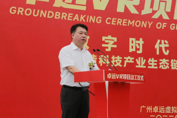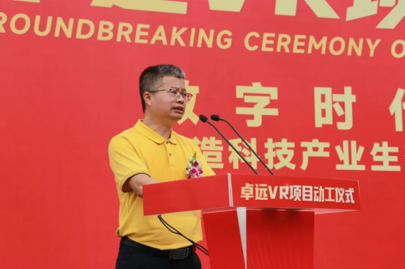 ▲廣州卓遠虛擬現(xiàn)實科技有限公司董事長陽序運在儀式上致辭