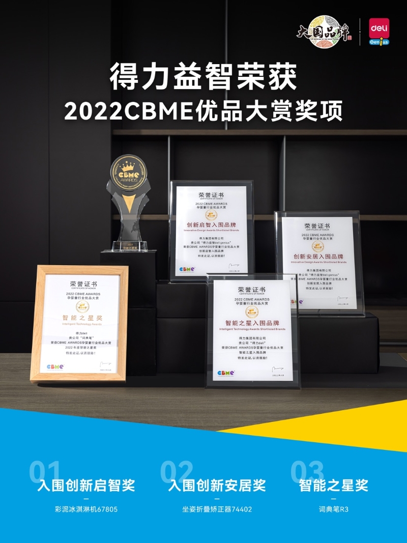 得力益智斬獲多項(xiàng)2022CBME優(yōu)品大賞大獎(jiǎng)