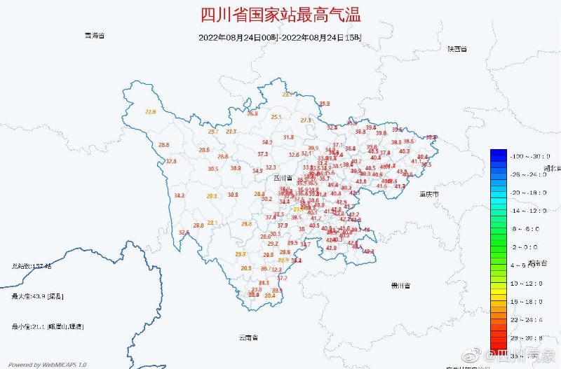 據(jù)四川氣象官微消息,截至今日(24日)15時,四川高溫再次刷新紀(jì)錄。14:58,四川省達(dá)州市渠縣達(dá)到43.9℃,打破了四川省國家氣象站的最高紀(jì)錄。