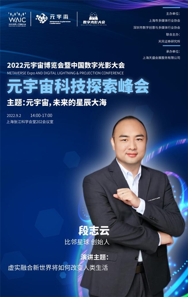 公司創(chuàng)始人段志云將在“2022元宇宙科技探索峰會”做主題演講,分享虛實(shí)融合新世界將如何改變?nèi)祟愋律睢?/p>