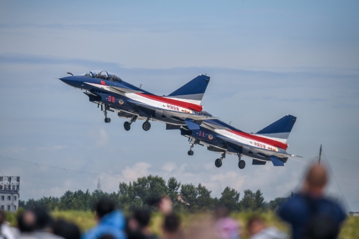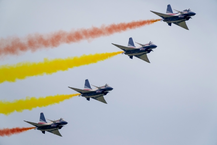 8月26日,在空軍航空開放活動(dòng)暨長(zhǎng)春航空展上,中國空軍“八一”飛行表演隊(duì)進(jìn)行飛行表演。新華社記者 張楠 攝
