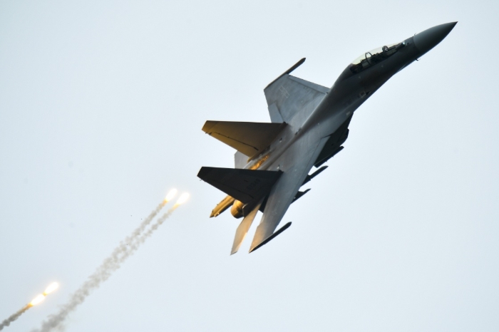 8月26日,在空軍航空開放活動(dòng)暨長(zhǎng)春航空展上,空軍殲-16戰(zhàn)機(jī)進(jìn)行單機(jī)空中展示。新華社發(fā)(萬全 攝)