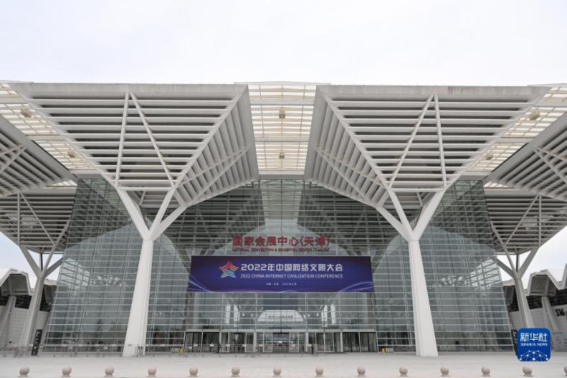 8月28日在國家會展中心(天津)拍攝的2022年中國網(wǎng)絡(luò)文明大會現(xiàn)場外景。新華社記者 孫凡越 攝