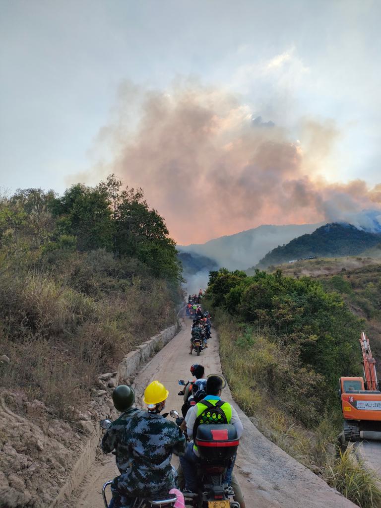 當晚7點,天色轉暗,滅火進入“總攻”時間。一隊隊消防隊員背上專業(yè)裝備再次沖向最前沿,他們也沒時間接受采訪。剛還在各處忙活的志愿者們,不約而同停了下來,紛紛給他們讓出通道。