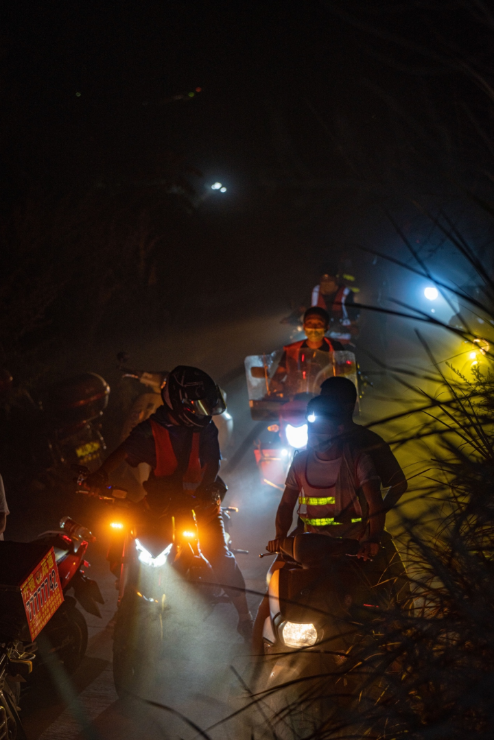 他們沒想到,在他們上山接人下山的同時(shí),越來越多新來的志愿者此時(shí)跟在他們身后,一起上山。這些摩托車騎手們,在這個(gè)夜晚,猶如一條發(fā)光的“小龍”,快速地“游”進(jìn)了大山深處。