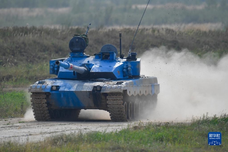 8月27日,在俄羅斯莫斯科州阿拉比諾靶場(chǎng),中國(guó)參賽隊(duì)96B坦克在比賽中。新華社發(fā)(亞歷山大攝)