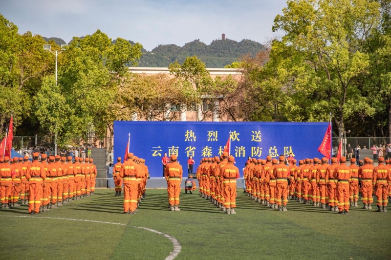 新華社重慶8月28日電(記者周聞韜、朱高祥)28日清晨,位于重慶市北碚區(qū)的西南大學第三運動場上,300多名云南森林消防隊員整齊列隊。在取得森林滅火的階段性勝利后,他們即將啟程返回駐地。