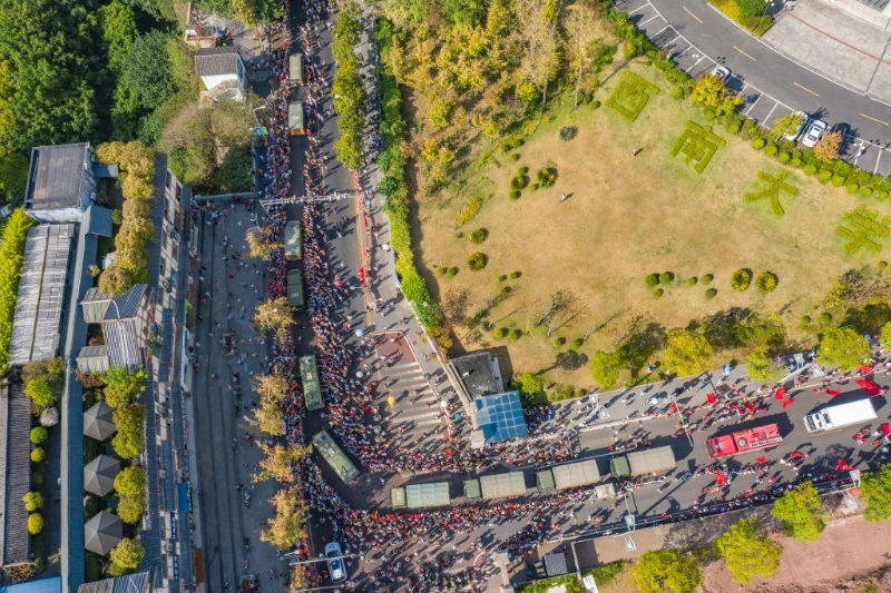 第三運動場背靠縉云山主峰獅子峰,遠遠望去,山火過后的縉云山重歸安寧。得知消防官兵們即將返程的消息,眾多重慶市民自發(fā)前來送別消防隊員。
