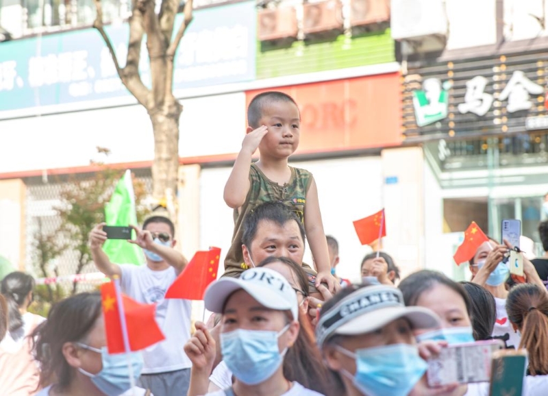上午9時許,官兵們整隊完畢、登車出發(fā)。此時,送別的人群已經(jīng)擠滿了道路兩旁。