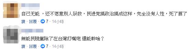 此番言論在島內(nèi)引發(fā)熱議。大量網(wǎng)友在社交平臺(tái)發(fā)表留言痛批民進(jìn)黨當(dāng)局:“沒能力救人也不讓有能力的救?!薄白约壕炔涣巳耍嗣裾掖箨懬缶?,還要罵人擺譜?丟臉?!薄白约簾o能,還不愿意別人獲救,民進(jìn)黨搞政治搞成這樣,完全沒有人性?!薄霸缈雌扑麄儓?zhí)政的能耐,一張嘴巴拉巴拉胡亂騙,撒錢撈錢?!?/p>